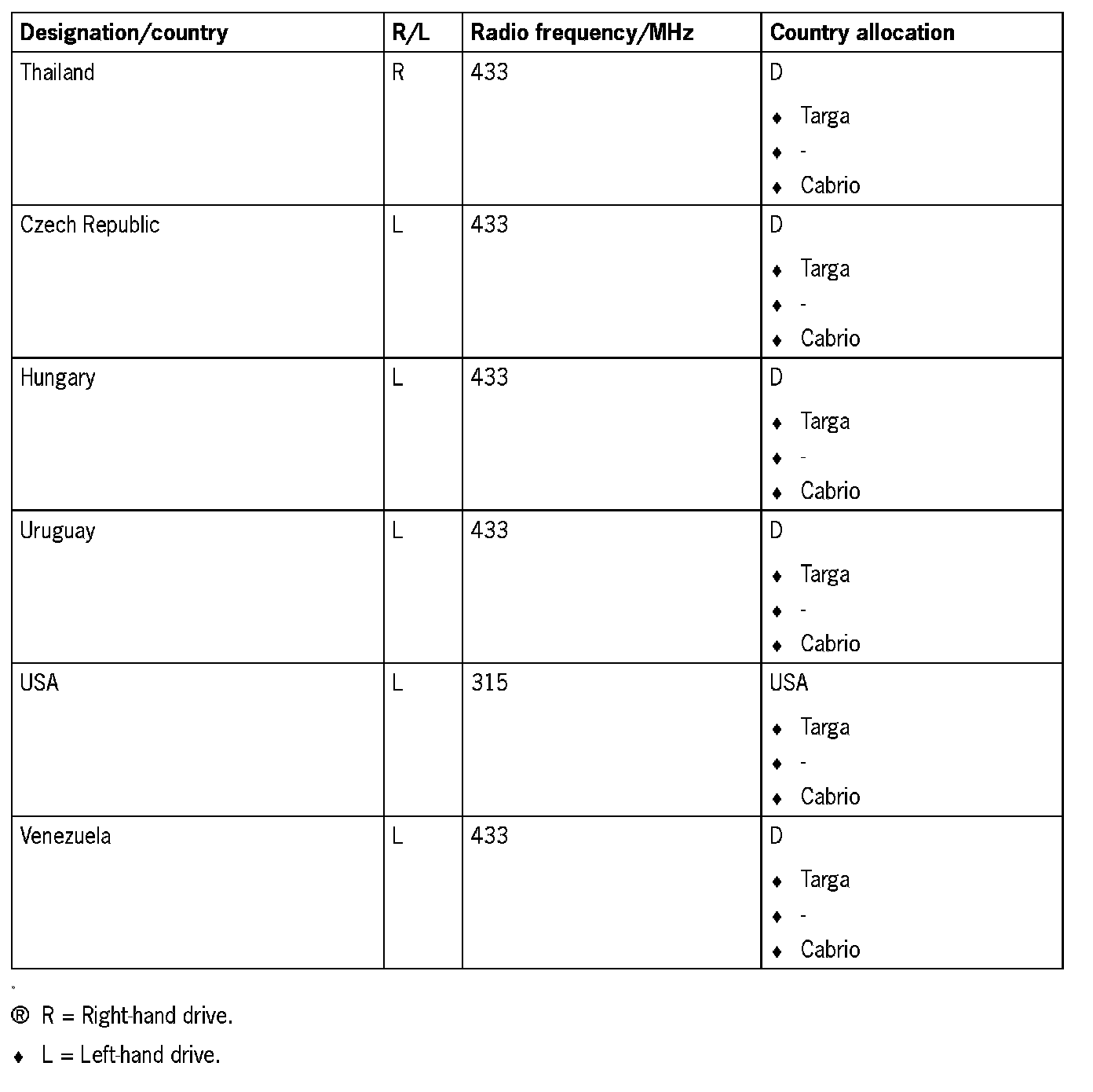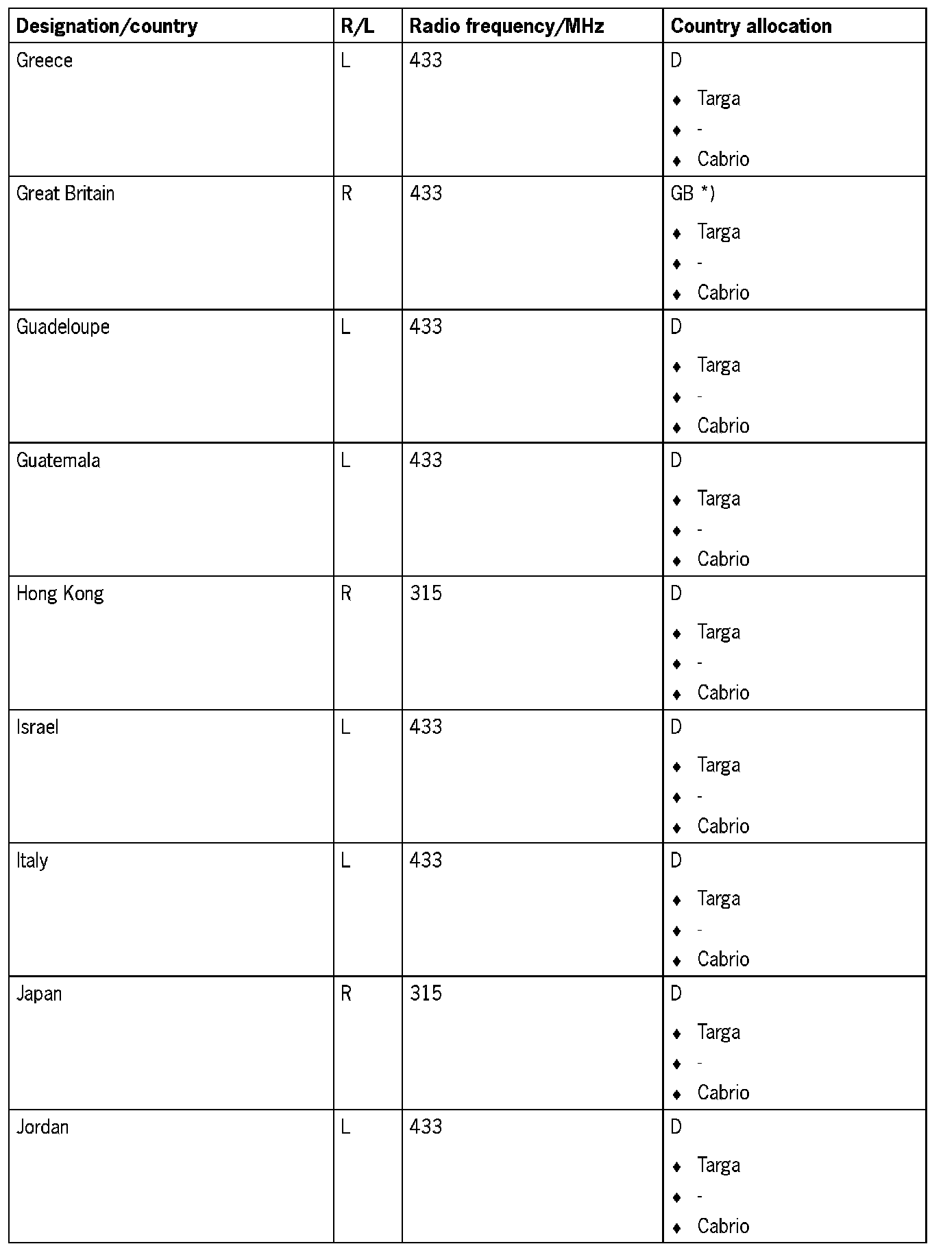 The country in which the vehicle is used as well as the vehicle design (sliding roof, Cabrio) can be coded using the Porsche System Tester II No. 9588.