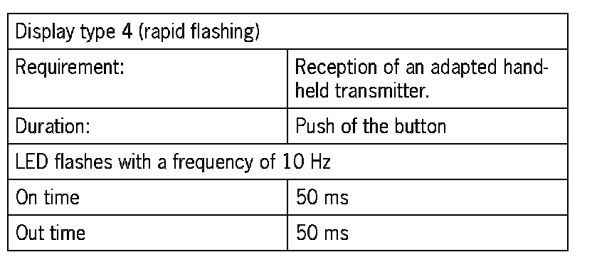 If a control command is issued via the hand-held transmitter, this is confirmed with display type 4 for the duration of the operation. This display has priority.