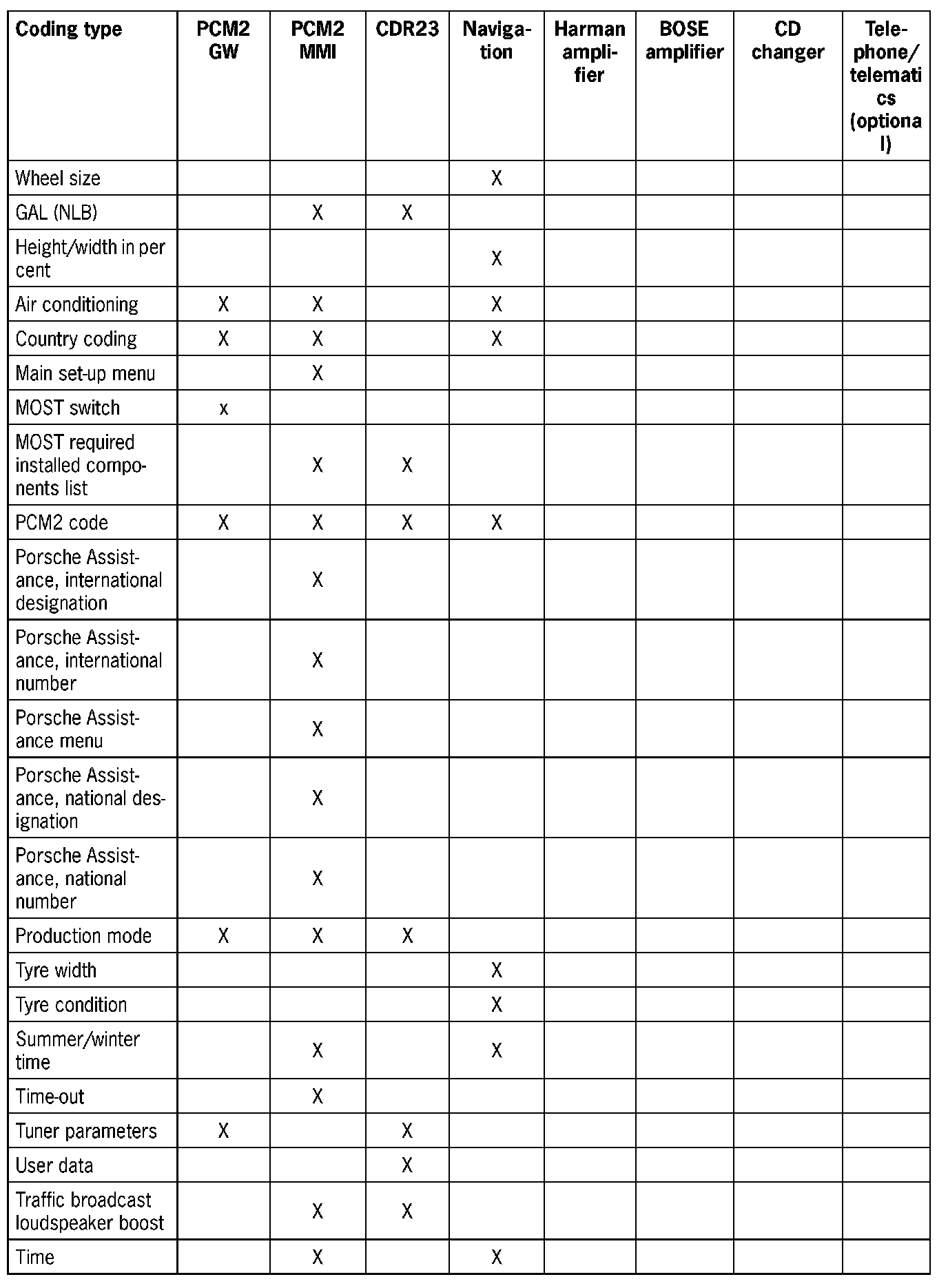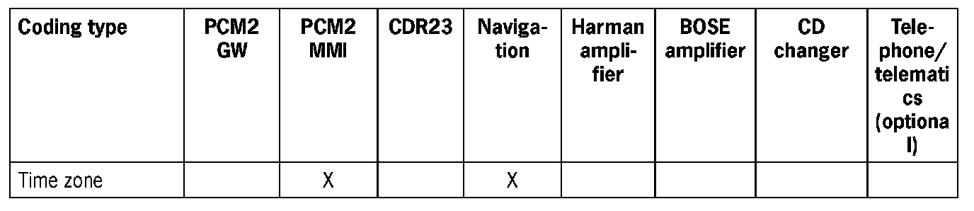 Under the menu item 'Modify coding', the PCM2 codes can be coded on a vehicle and country-specific basis.