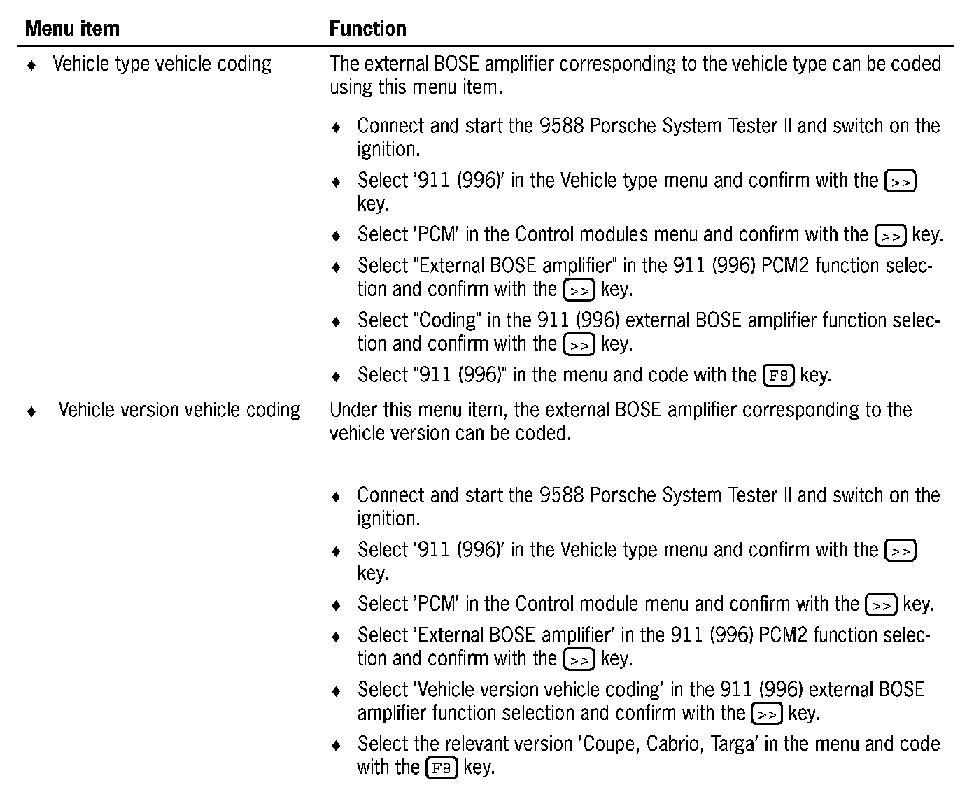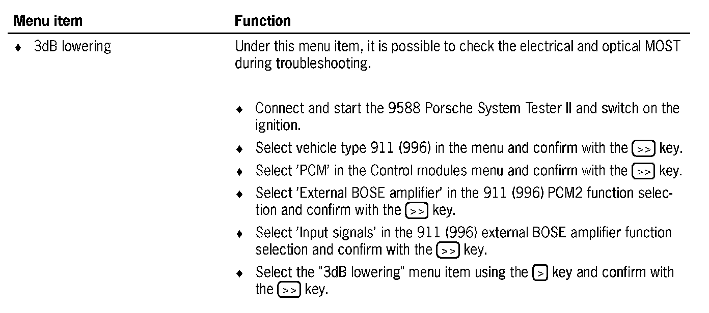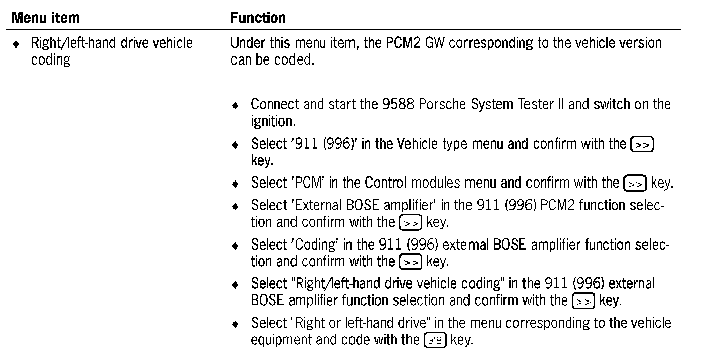 4. Select "External BOSE amplifier" in the 911 (996) PCM2 function selection and confirm with the [>>] key.
