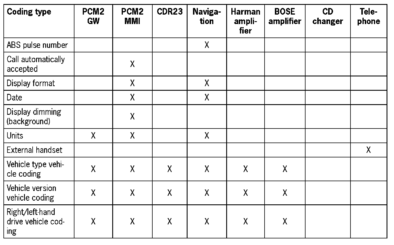 - When the PCM2 is replaced, the coding must be performed in accordance with the connected MOST control modules.