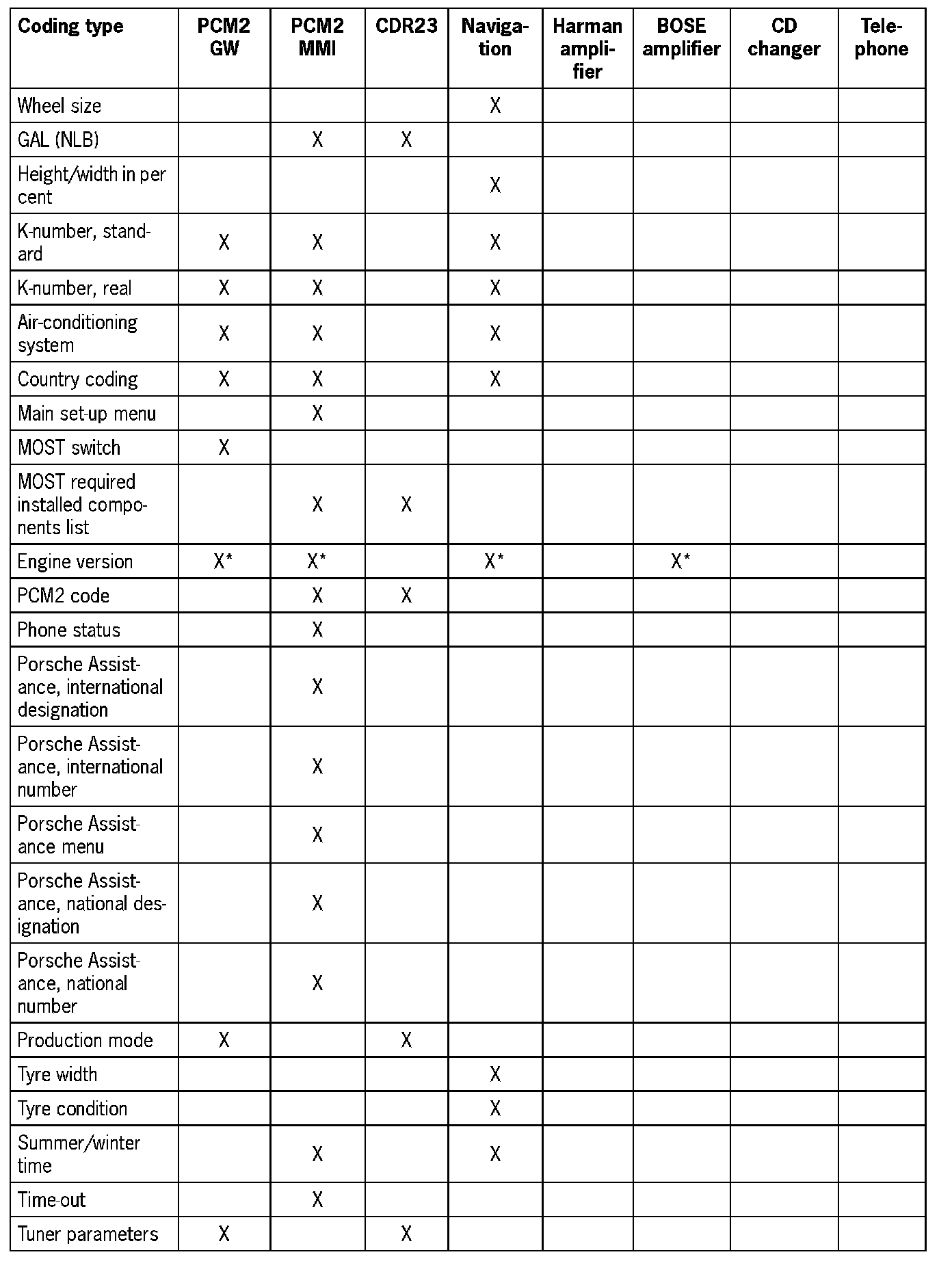 Under the menu item 'Modify coding', the PCM2 codes can be coded on a vehicle and country-specific basis.
