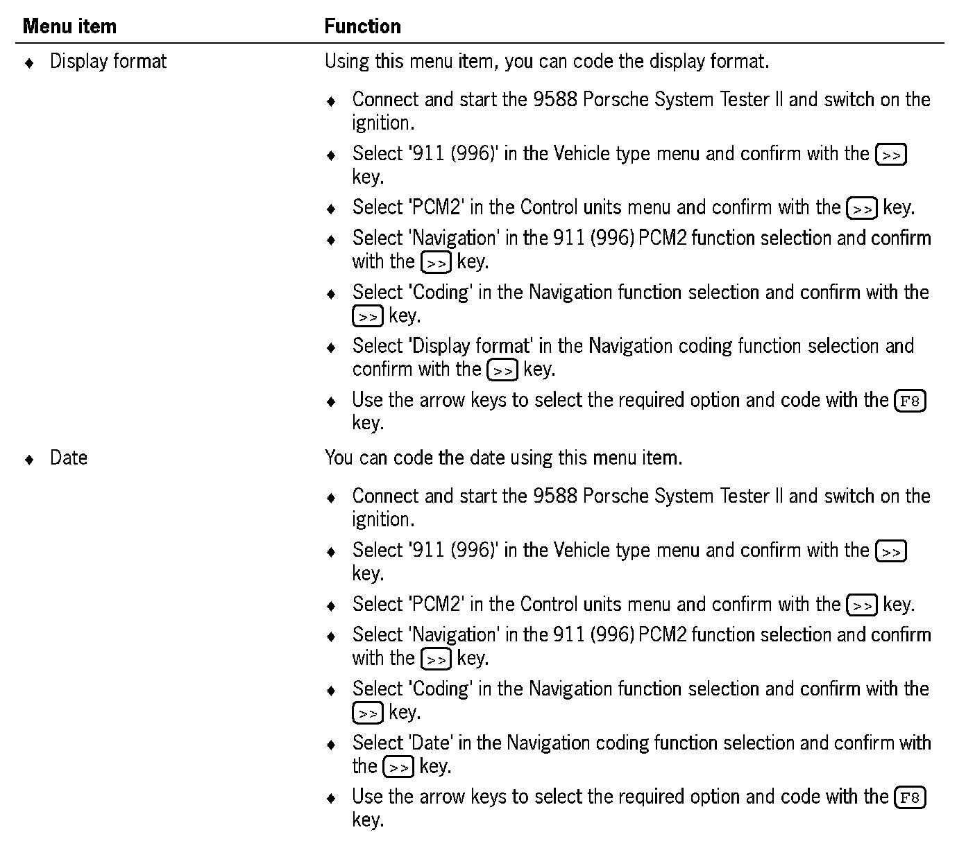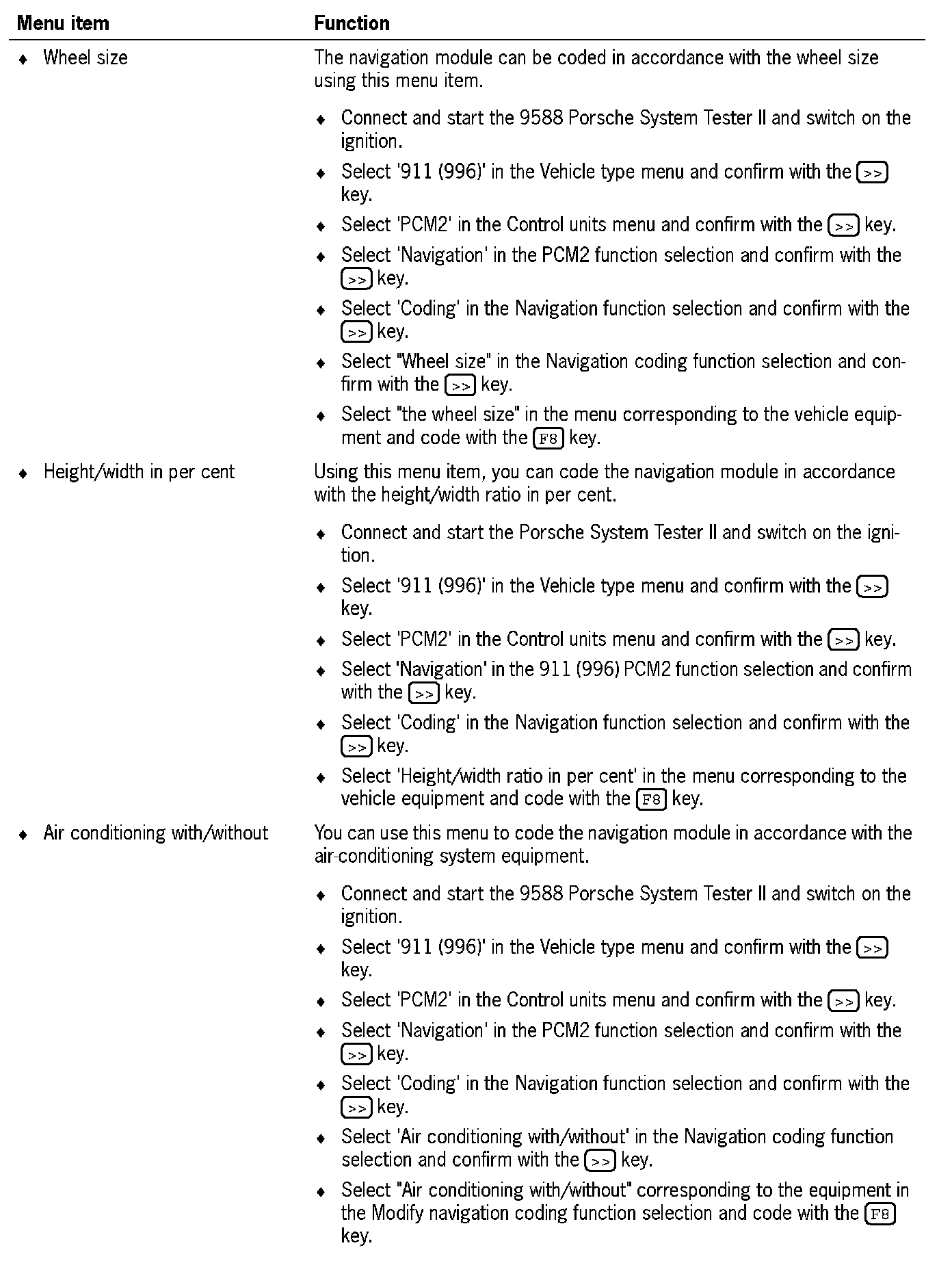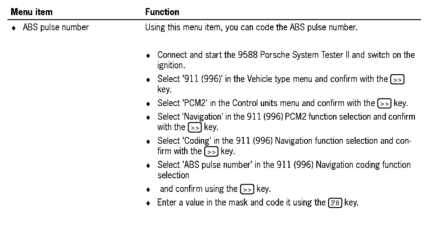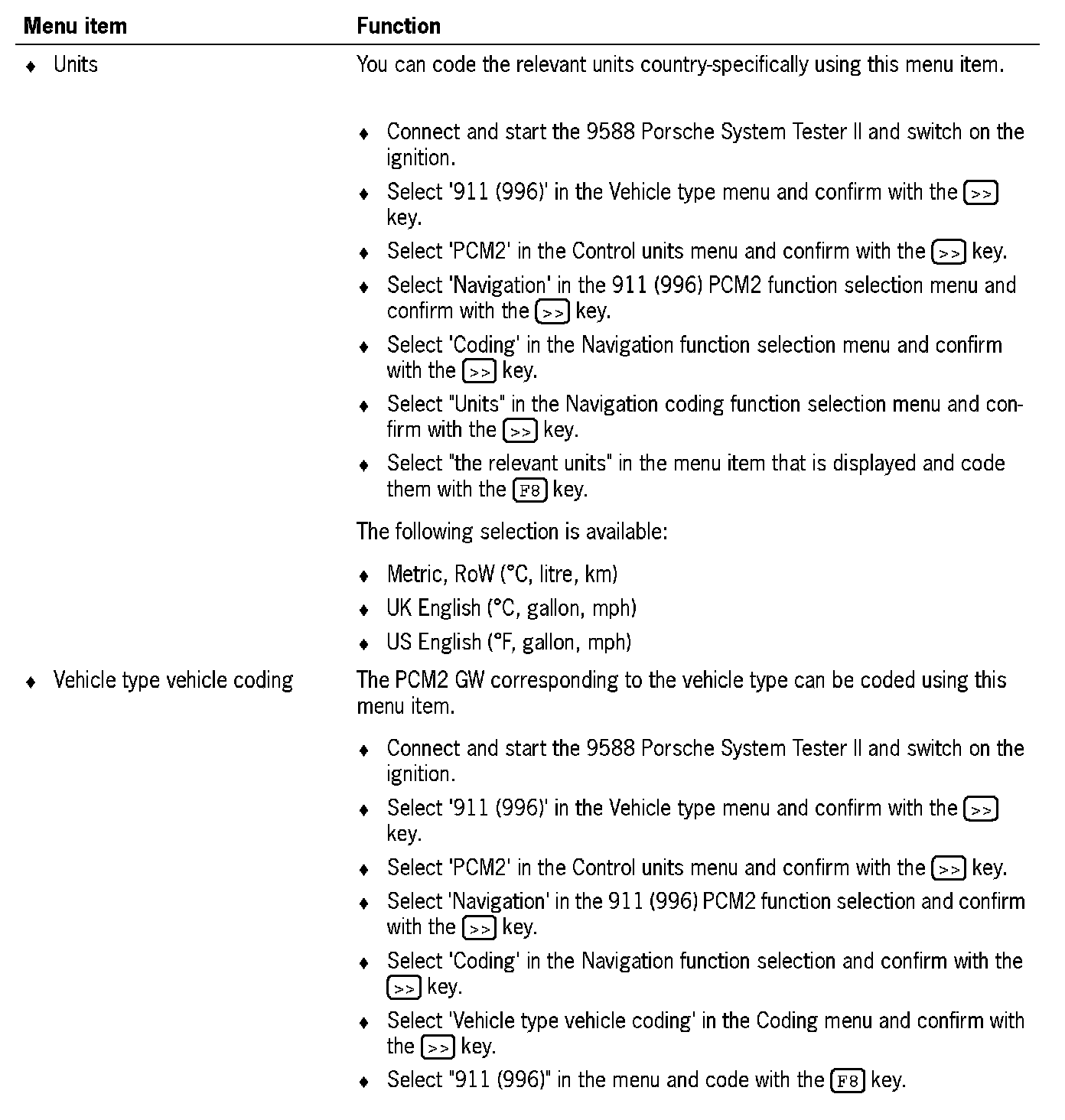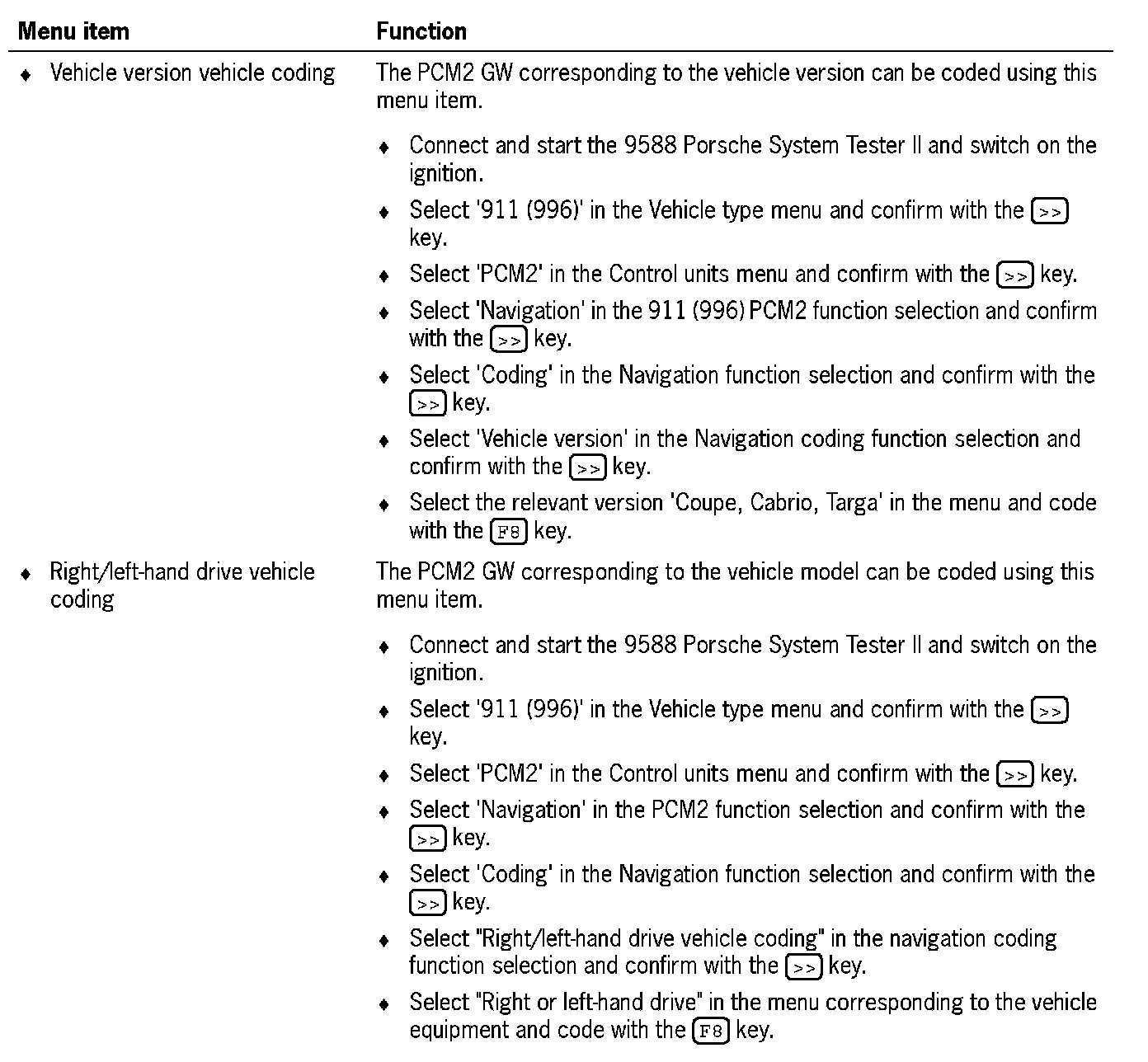 2. Select '911 (996)' in the Vehicle type menu and confirm with the [>>] key.