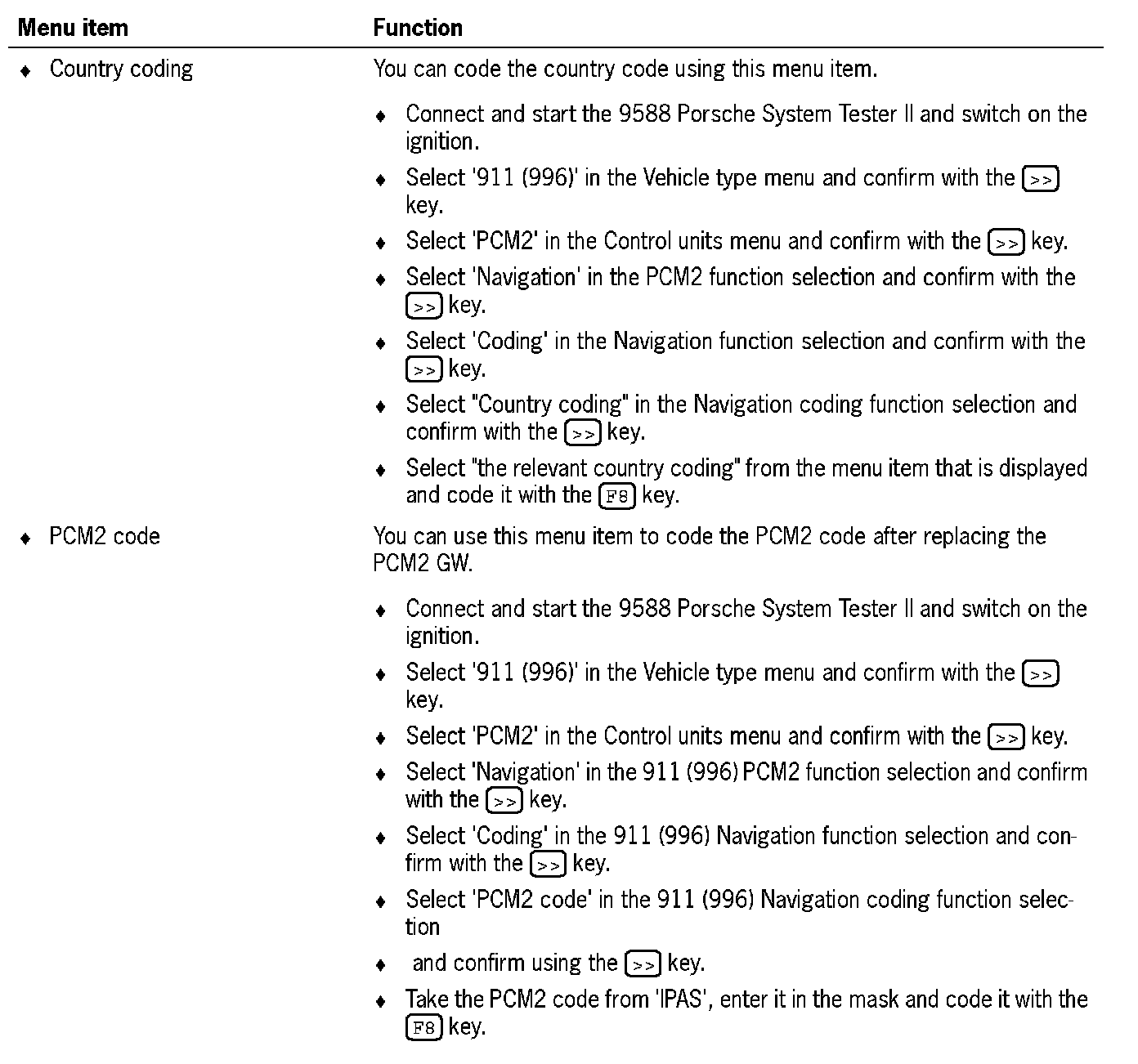 4. Select 'Identification' in the 911 (996) PCM2 function selection and confirm with the [>>] key.