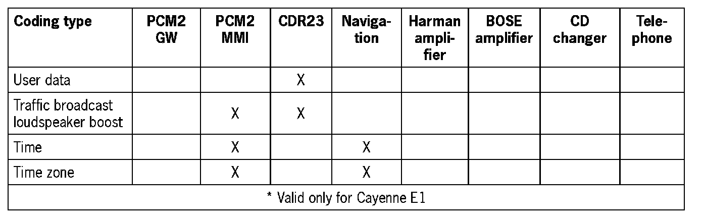 The PCM2 can be coded as required under the menu item 'Modify coding'.