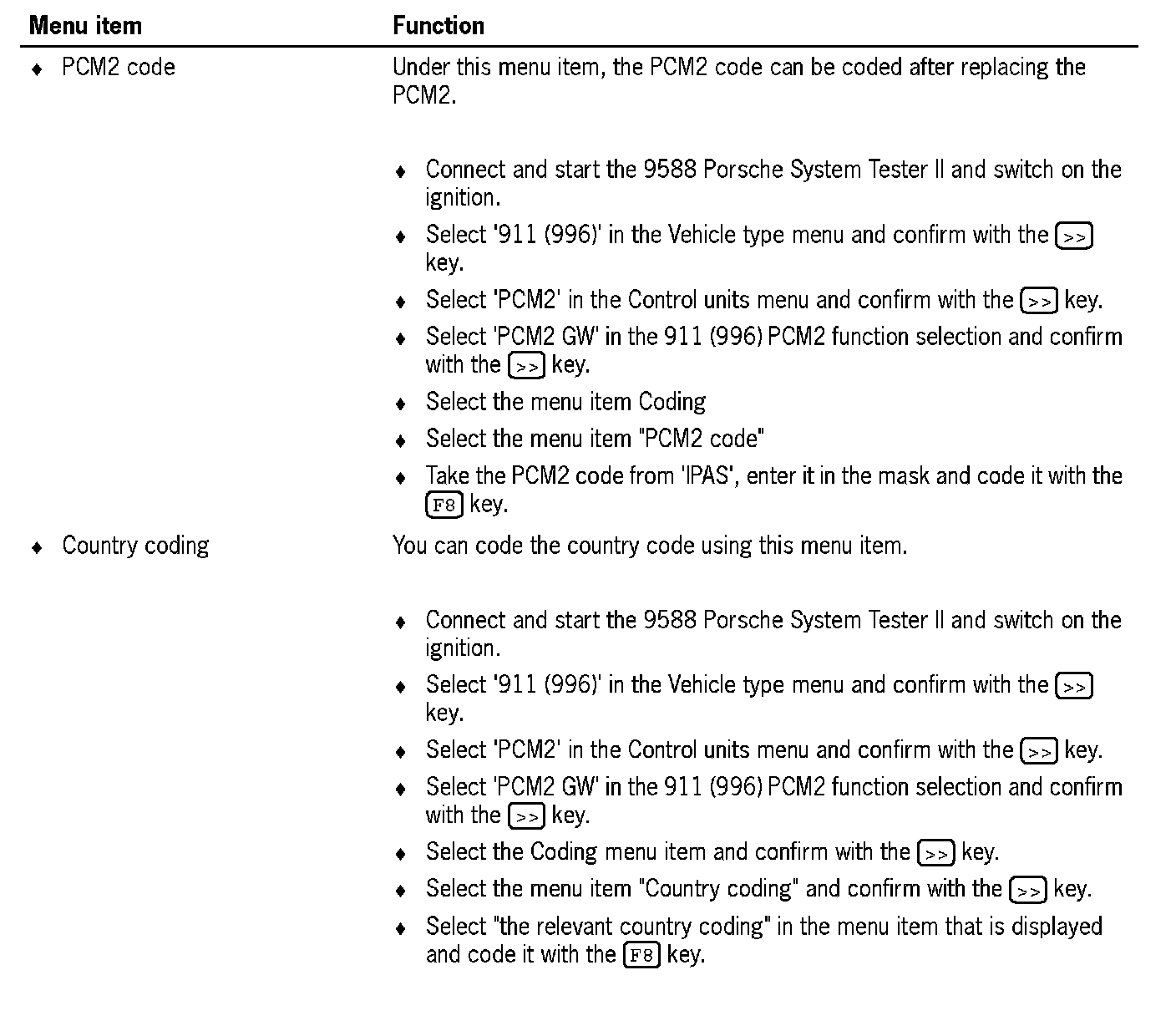 2. Select '911 (996)' in the Vehicle type menu and confirm with the [>>] key.