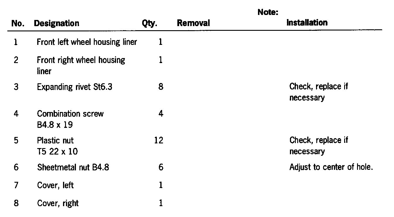 Front Fender Liner: Service and Repair