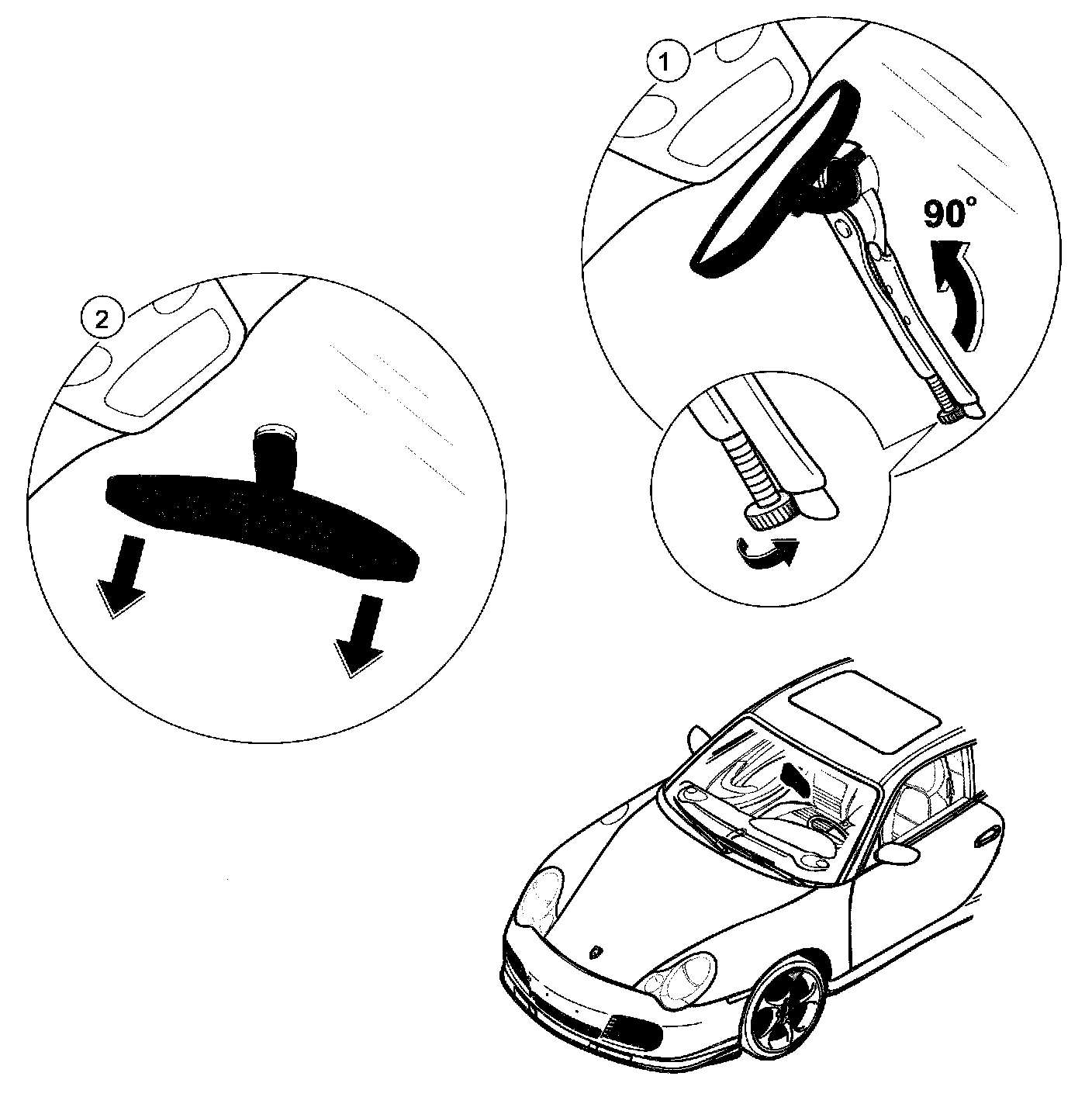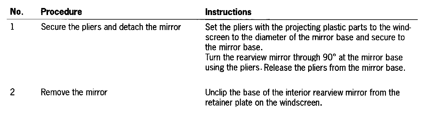 - The small aluminium chip in the locking area must be removed after the interior rearview mirror has been removed from its base, as it otherwise cannot be ensured that the mirror will be seated securely when fitted.