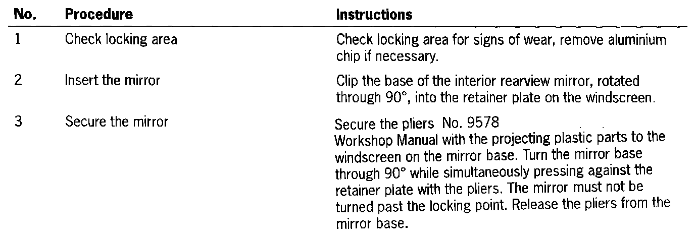 - If the mirror is being fitted for the second or third time, inspect locking area of the mirror base for signs of wear and replace the mirror if necessary.