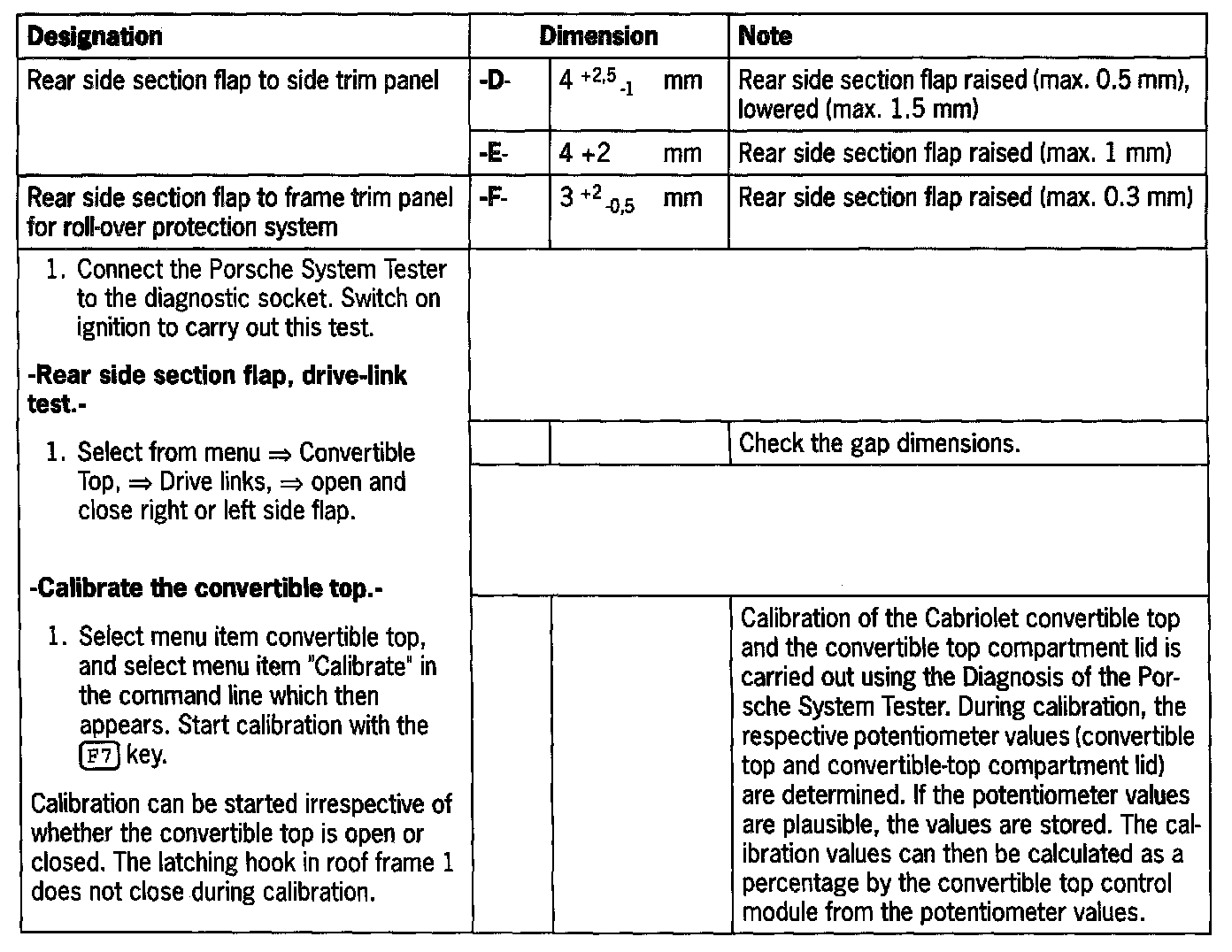 - Set the gap dimension -F- rear side section flap to frame trim panel for the roll-over protection system.