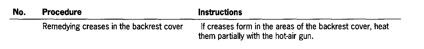 - If creases form, only short partial warming with the hot-air gun is permissible. The hot-air temperature of approx. 50 degrees Celsius (122 Fahrenheit) must always be observed.