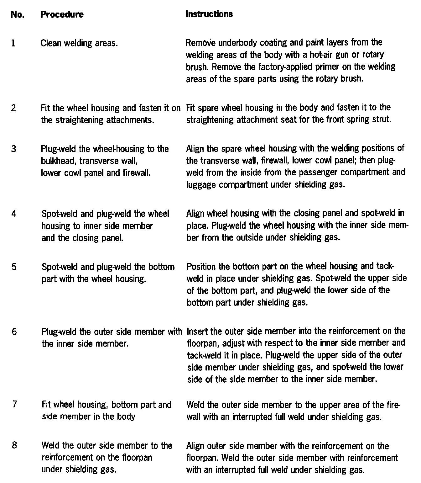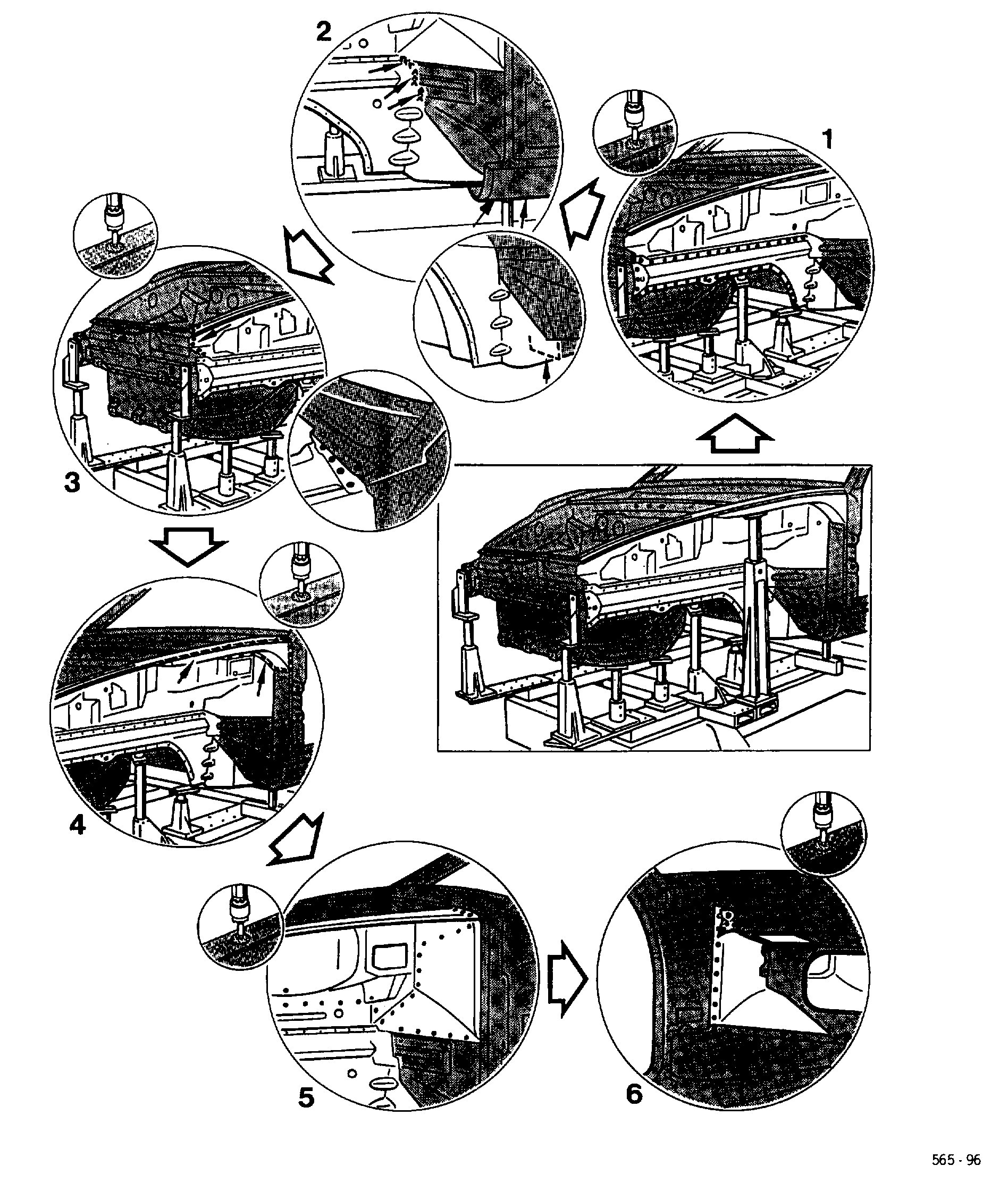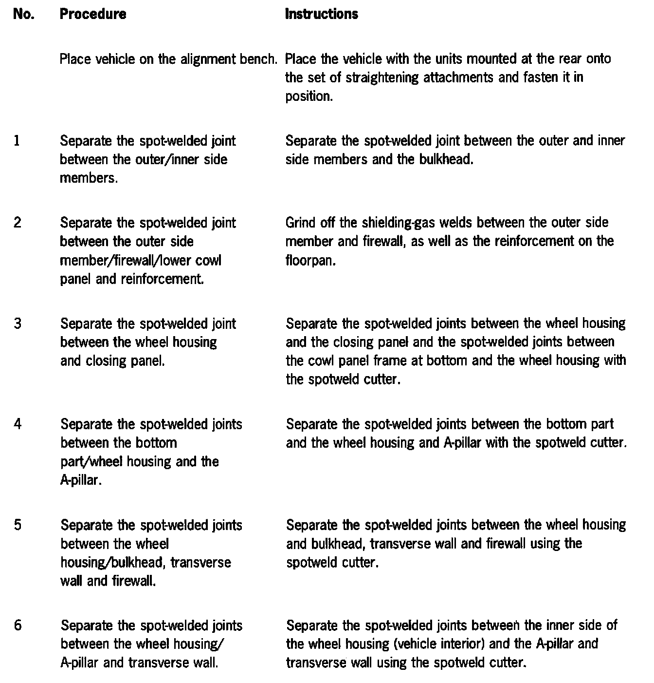 All straightening work on this area of the body must have been completed before the damaged parts are removed!