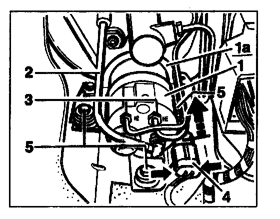 - Undo the three plastic fastening nuts -5- and remove the booster pump -1- with the holder -1a-.
