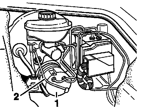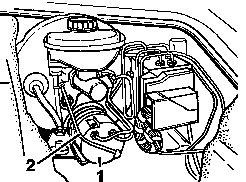 Note! The booster pump - arrow - remains fitted (installed) during removal and installation of the brake master cylinder in vehicles with PSM.