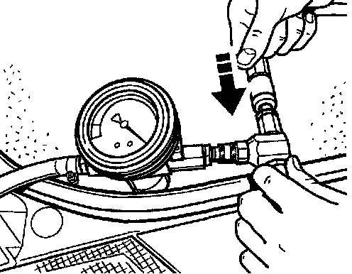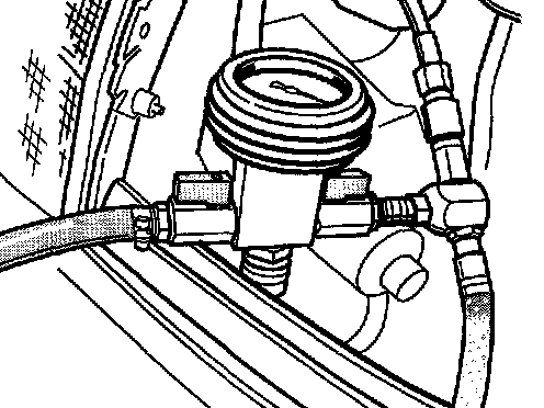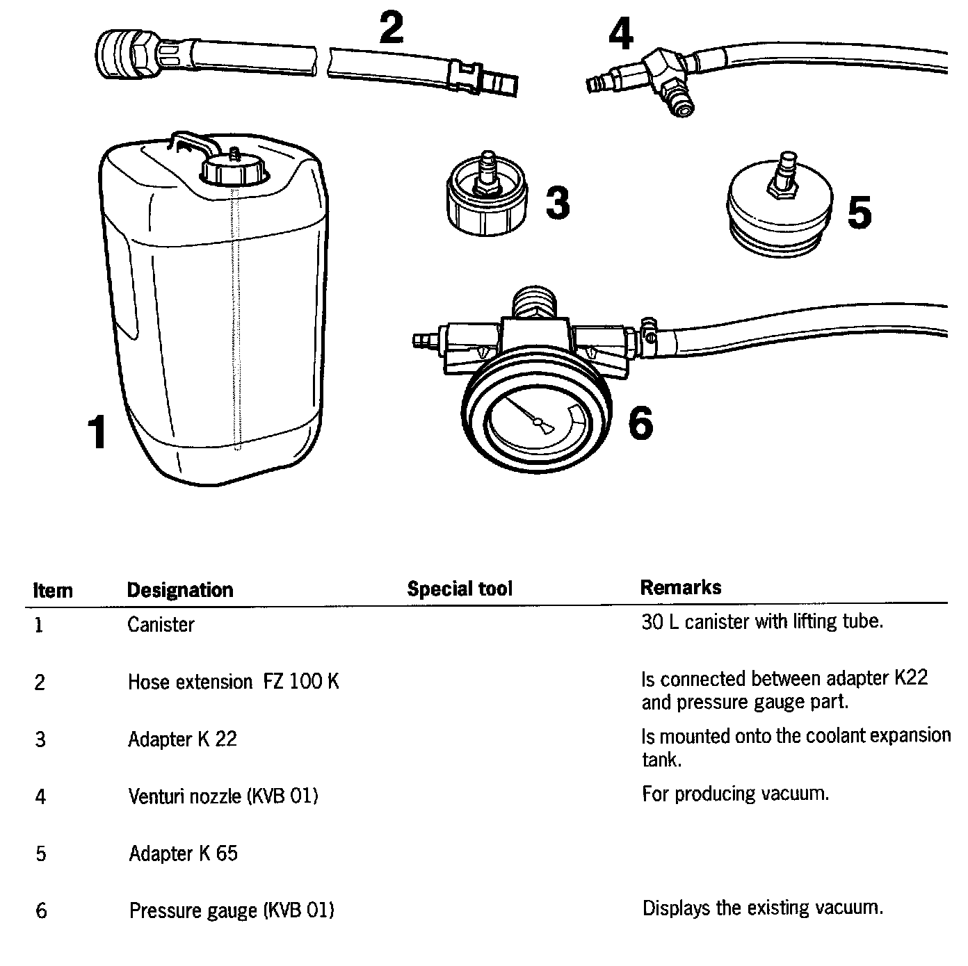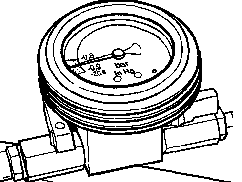 ^ After both shutoff valves on the vacuum pressure gauge have been closed and the compressed air supply has been unplugged, the vacuum must not drop. If the vacuum drops within approximately 30 seconds, there is a leaking point in the coolant circuit.