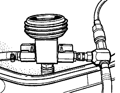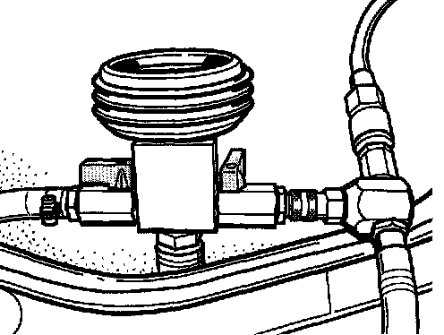 3. Connect the vacuum pressure gauge of the bleeder tool to the flexible extension. When doing so, ensure that both shutoff valves are closed (positioned 90° to flow direction)