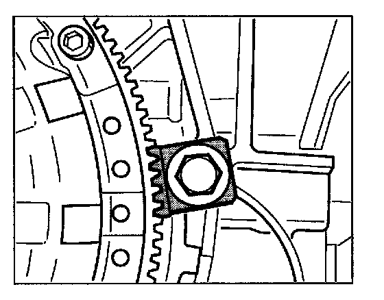 6. Remove the torque-converter drive plate. Fit special tool toothed segment No. 9538/1 for countering using an M12 x 50 screw. Unscrew 8 M10 x 25 x 1 Torx socket screws and remove drive plate.