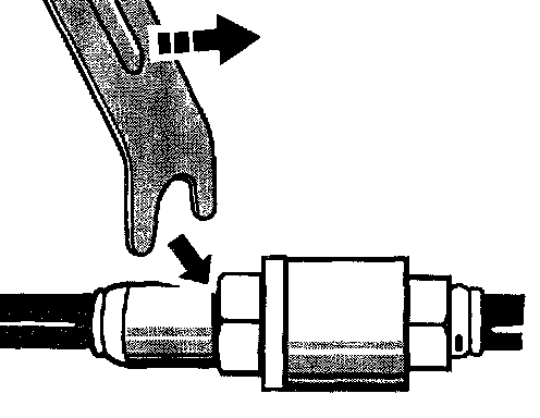 4. Check proper engagement of the plug coupling with special tool Test tool 9623. Insert special tool into the groove (-arrow-) and check that the plug is seated correctly in the coupling by applying slight pressure. The plug must not slide out.