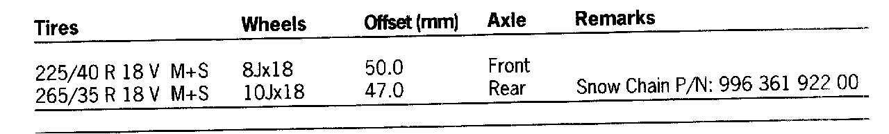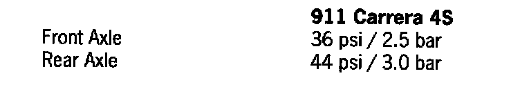 This tire pressure applies only to the tire makes and types approved by Porsche, and is specified for cold tires (approx. 20° C/ 68° F). The tire pressures must never be lower than the specified values.