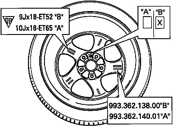 These wheels can also be fitted on the 911 Carrera (993) and the Boxster. Refer to the Technical Information, Wheels and tires overview, for the respective wheel alignment.