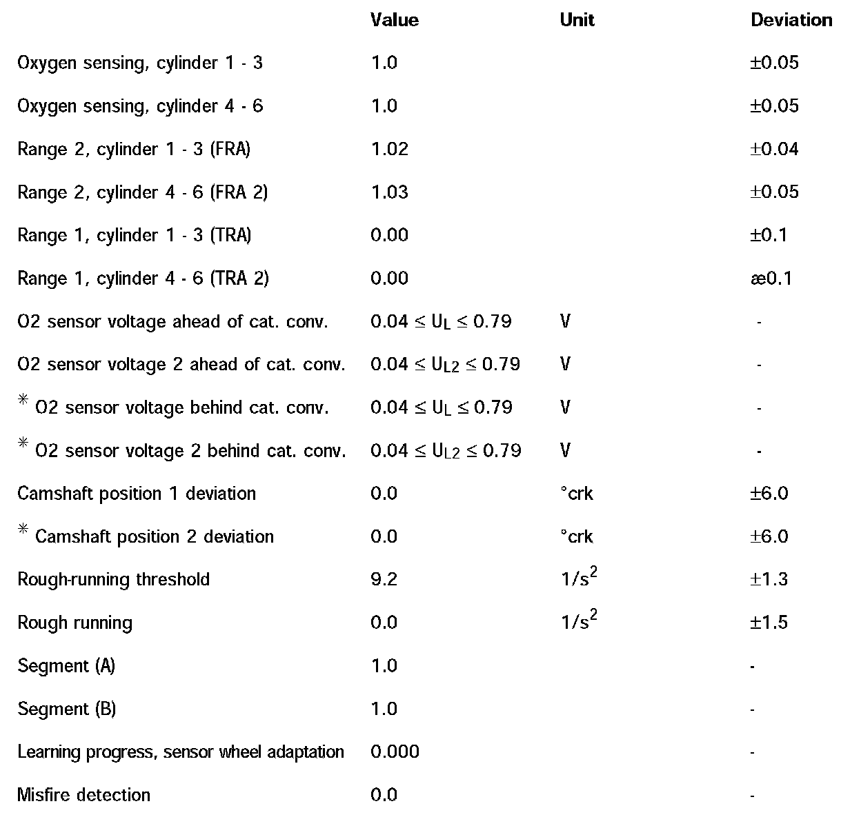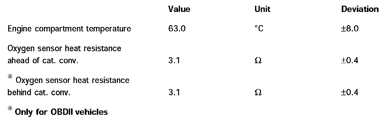 NOTE: The stated values are the result of measurements of vehicles with different mileages and in perfect condition. Different values can result from diagnosis in the workshop because of mileage and environmental influence. For DME diagnosis, it is important to look at several values simultaneously and in a collective group during troubleshooting.