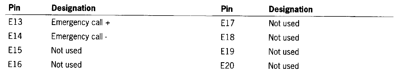 Connector E, blue, emergency call