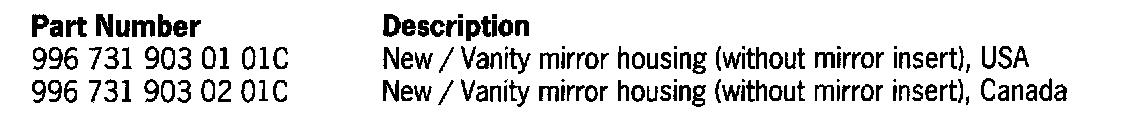 In the event of a complaint, replace the vanity mirror. Previously only the complete sun visor was available. The vanity mirror housing is now available as an individual part.