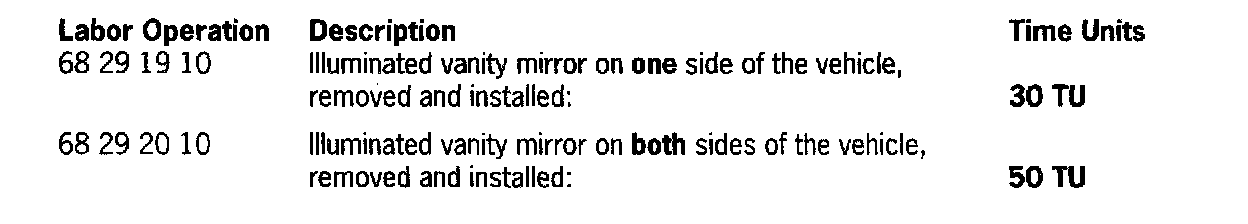 Interior - Vanity Mirror Lamp Inoperative