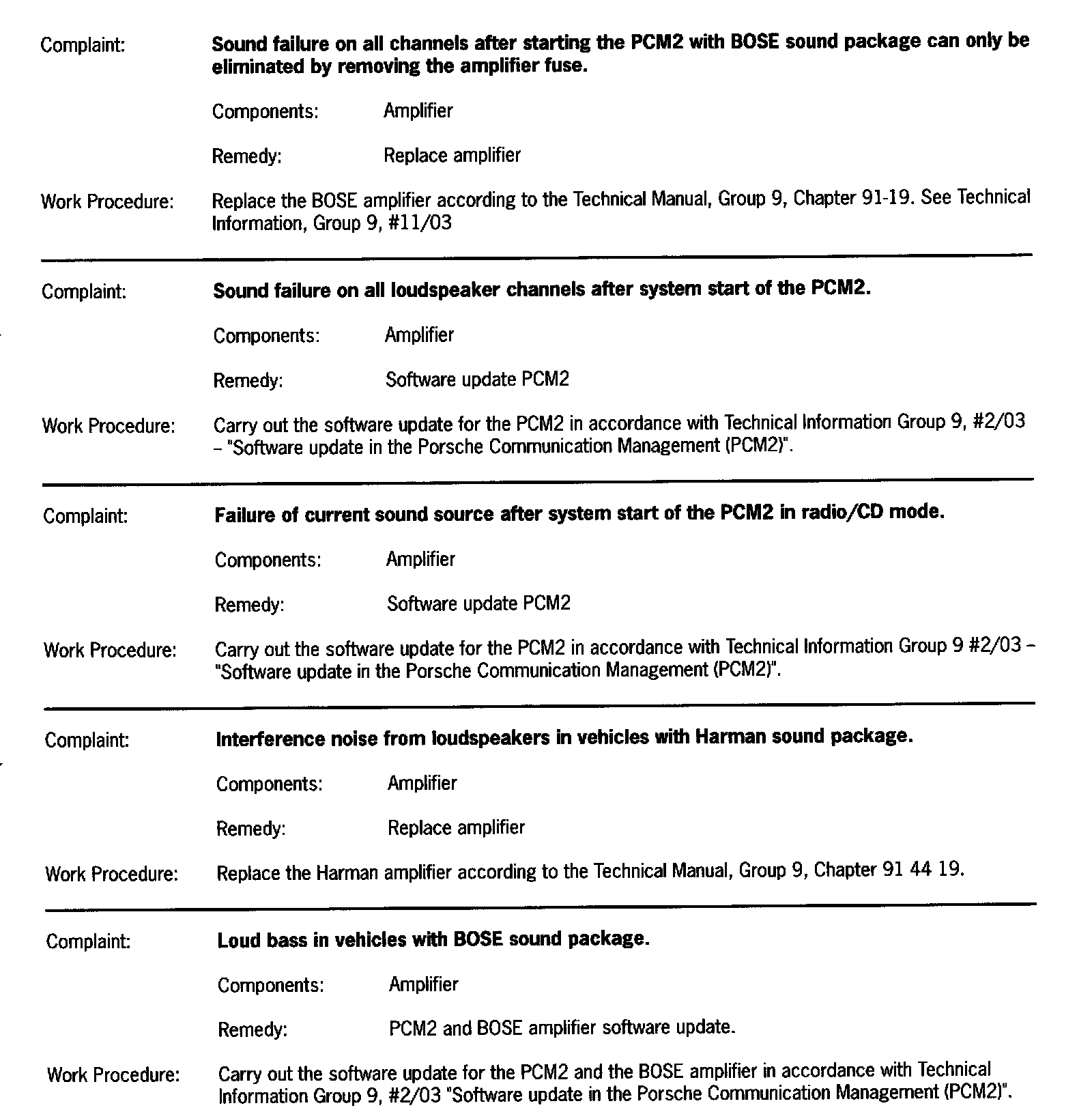> Technical Information: # 15/03 - PCM2 with BOSE Sound package: sporadic sound failure