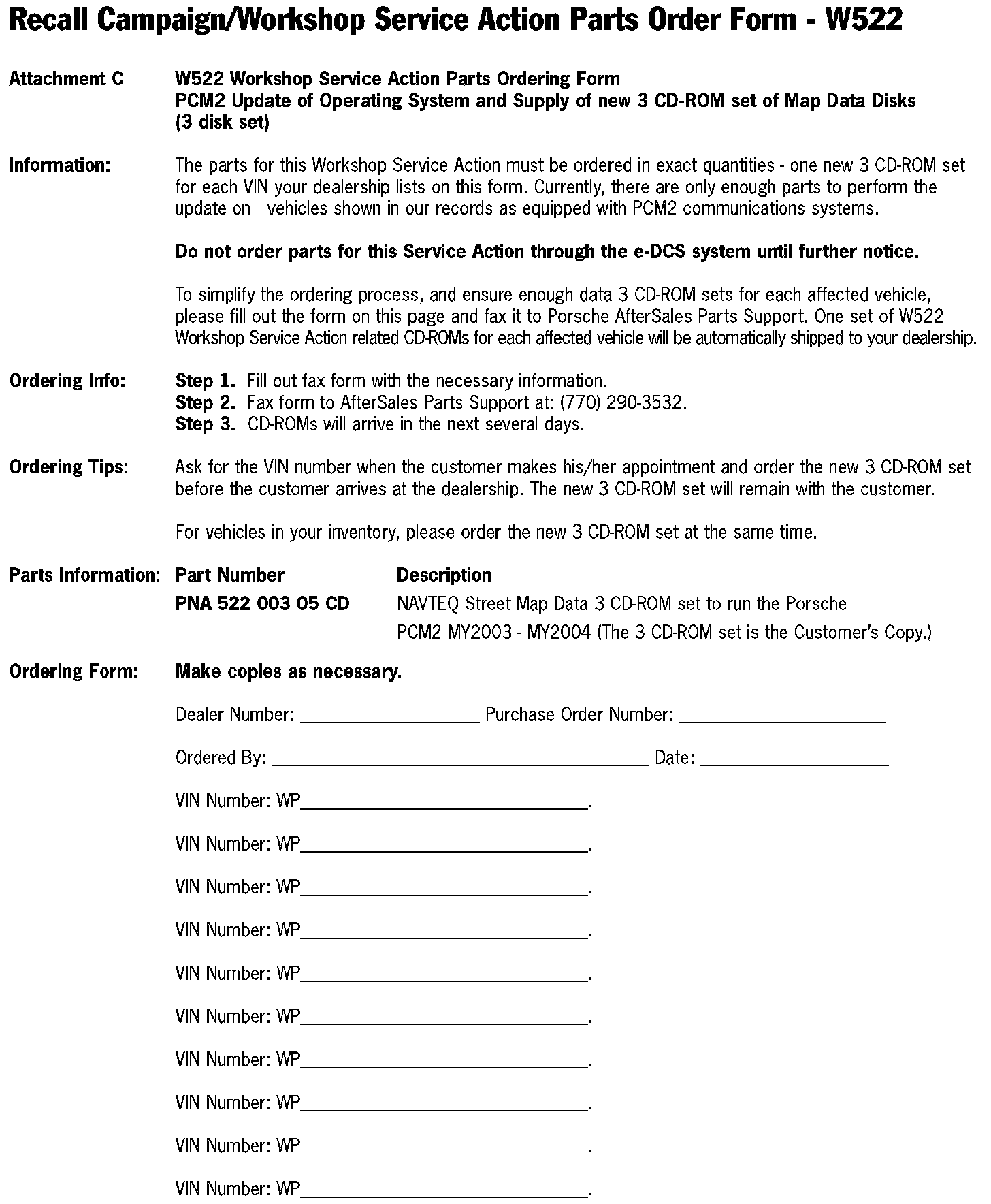 This is to inform you of a voluntary Workshop Service Action on a certain range of 2003 and 2004 model year 911 C/C4/4S/Targa/Cabrio/C4 Cabrio/4S Cabrio (996) vehicles. The PCM2 system software needs to be updated to software version "3.0" for using the new navigation CDs.