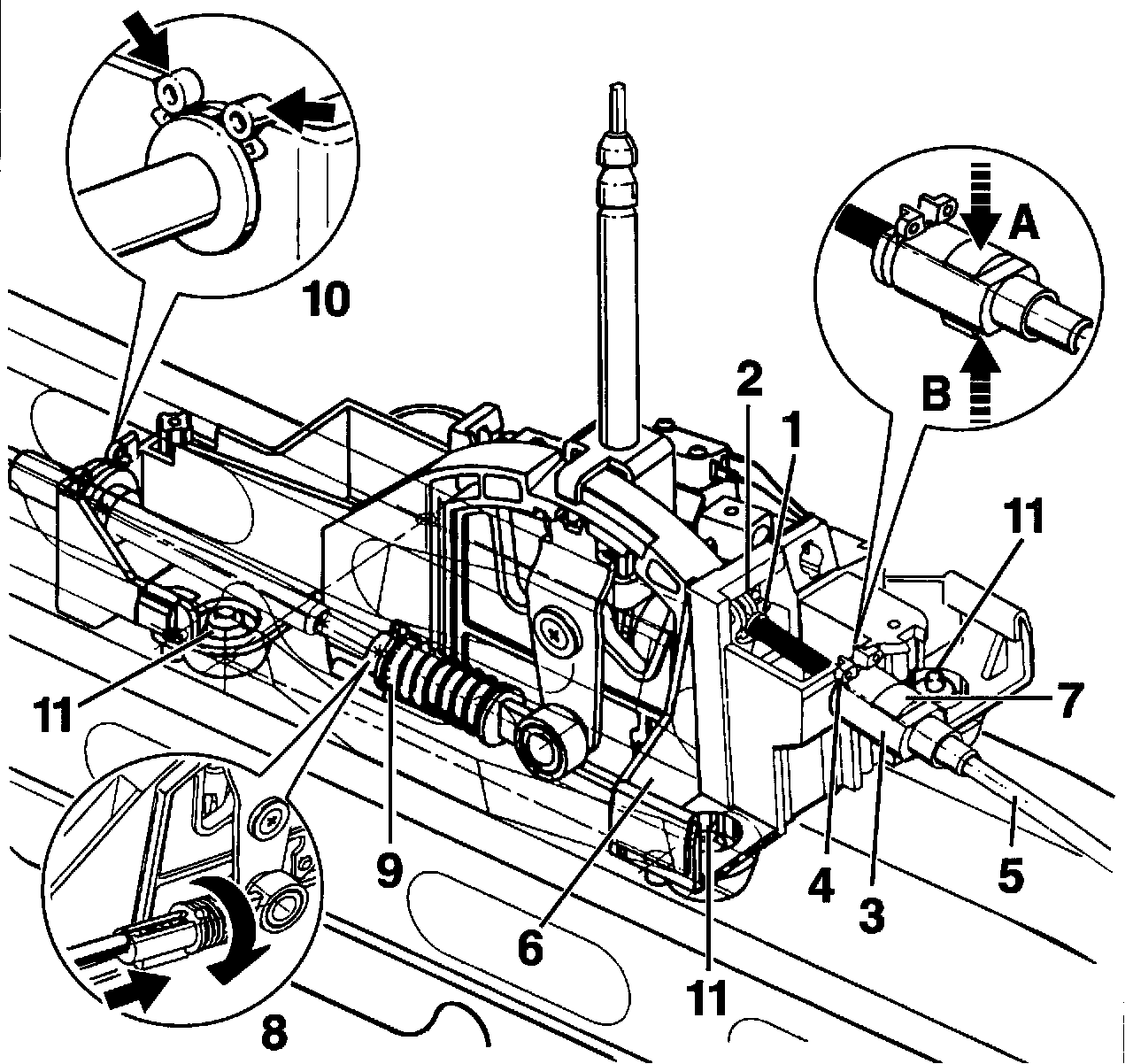 5. Disengaging selector lever cable:
