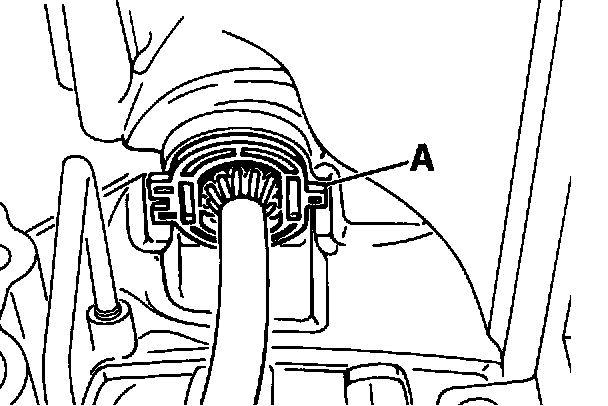 1. Replace sealing rings for socket, coat thinly with Vaseline and insert wiring harness socket in correct position. Lug "A" must point towards the spur gear.