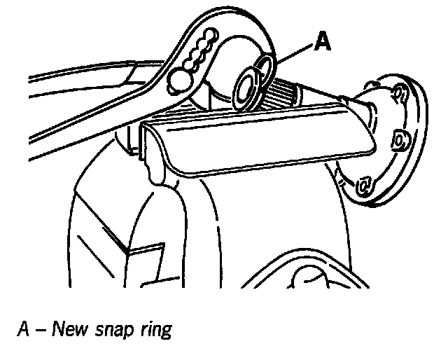 3. Always replace the snap ring for the halfshaft flange. To do this, clamp the flange in the vice with protective jaws and press out the snap ring with the new snap ring "A".