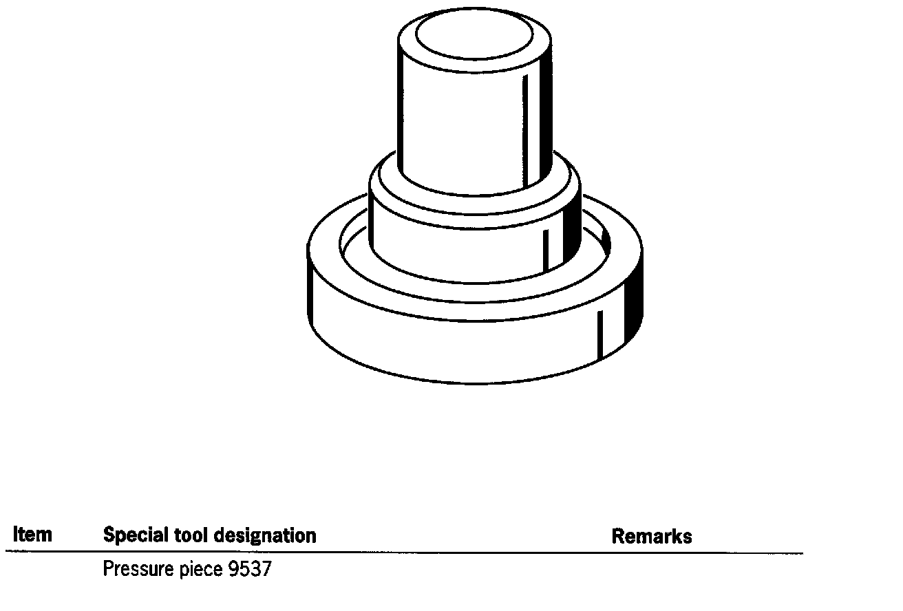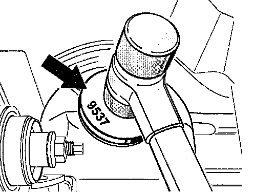 2. Drive in the sealing ring with the special tool pressure piece 9537 -arrow- up to the mounting face. To do so, use a rubber hammer on the center of the pressure piece.