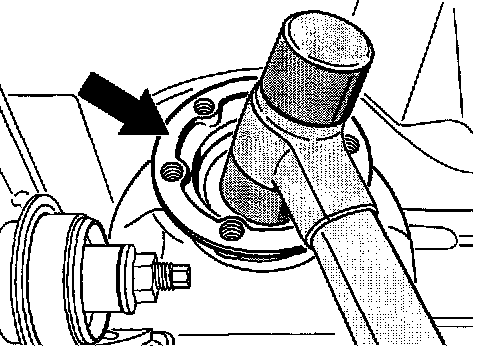 4. Grease the snap ring thoroughly and drive in the halfshaft flange -arrow-.