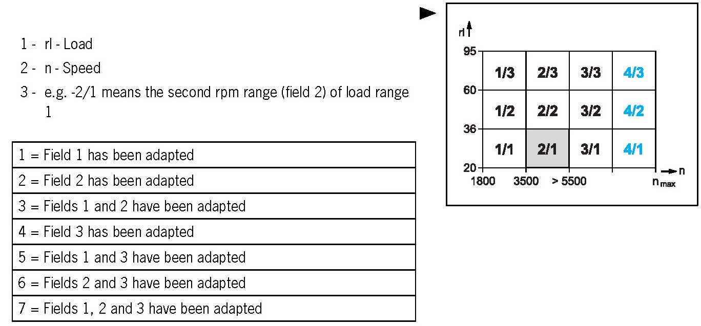 - Adaptation, range 1 (FRA) bank 2 [lower and upper load range - displays the value currently travelled]