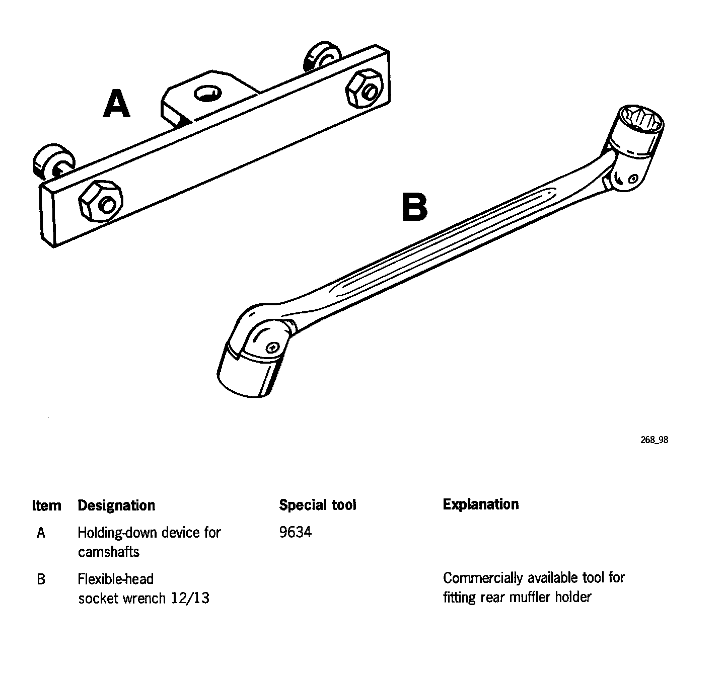 Note: In order to prevent damage to the camshafts or bearing saddles, the holding-down device must be fit before the cylinder head cover is detached.