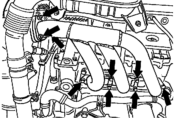 8. Fit exhaust manifold with new gasket. Fit the gasket in the correct position between the exhaust manifold and cylinder head. The bent-up sheetmetal tab must point upward toward the cylinder head. Tightening torque for hexagon-head bolts 25 Nm (18.5 ft. lbs.)