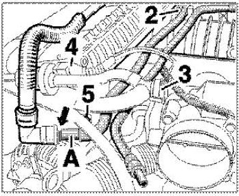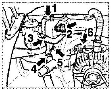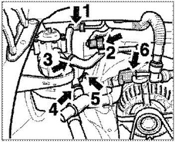 6. Unscrew the holder of the vacuum line (to the brake booster) on the left intake distributor (Tiptronic only). To do this, unscrew an M6 hexagon-head bolt and separate the pipe connector.