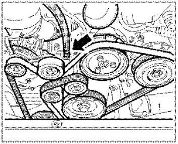 a. Remove the drive belt from the belt pulley of the air-conditioning compressor. Mark the running direction of the belt with a coloured pen. Slacken belt by turning the tensioning pulley (a/f 24) clockwise, hold still and simultaneously take the drive belt off the belt pulley of the air-conditioning compressor. Carefully allow the tensioning roller to turn back into tensioning position.