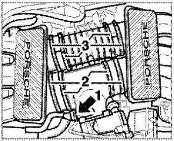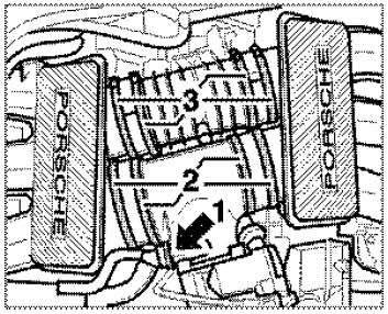 20. Undo the outer left screw-type hose clamps of the centre intake distributor and of the tuning pipe -2 and 3- . Remove centre intake distributor and tuning pipe. Remove vacuum hose and vacuum unit on the tuning pipe.