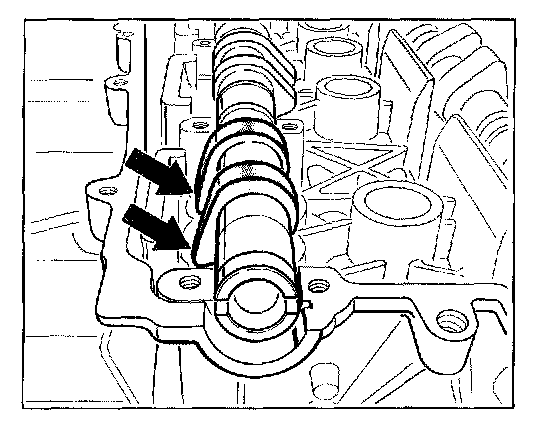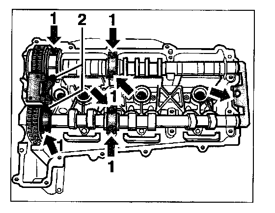 - Do not interchange the thrust bearings of the inlet and exhaust camshafts during assembly. Observe the identification (Figure shows inlet camshaft bearings).