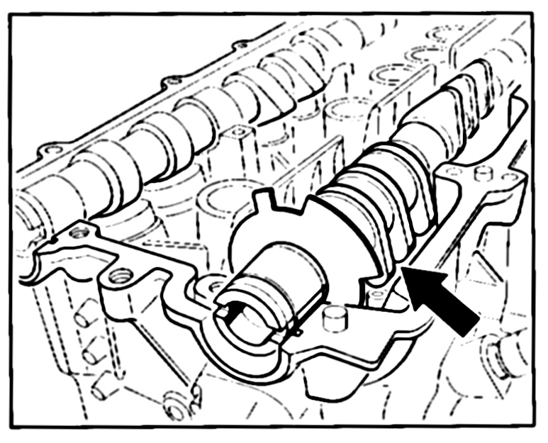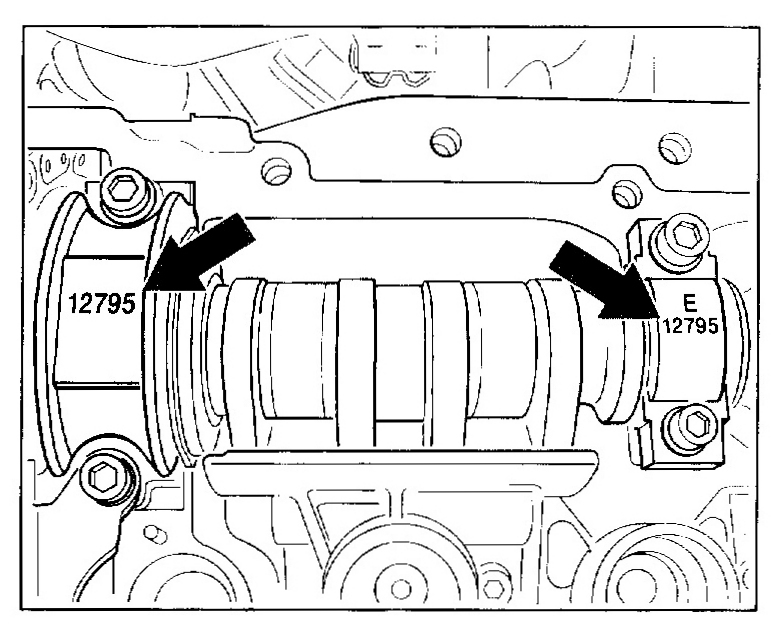 - Designation of inlet camshaft bearing: thrust bearing: E and pairing number on cylinder head/cylinder head cover, bearing cover of the bearing sleeve: only pairing number.