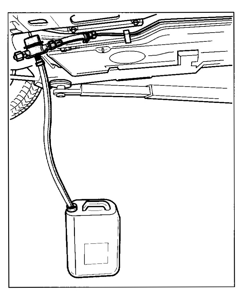 9. Then, actuate the fuel pump again with the System Tester and keep it active for 60 seconds. Start the stopwatch at the same time. Collect emerging fuel in the container you have to hand. Deactivate the fuel-pump relay after 60 seconds.