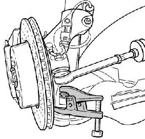 - When tightening the fastening nuts on the ball joint of the axle strut, counter with Torx screwdriver 9546 .