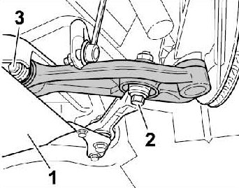 When installing the axle strut, make sure that axle strut fastening screw -3- is tightened only in vehicle position.