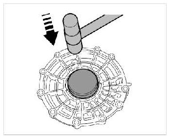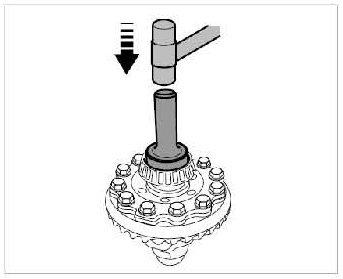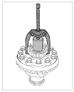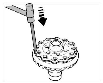 12. Fit taper roller bearing on the housing side on the differential using special tool drift.