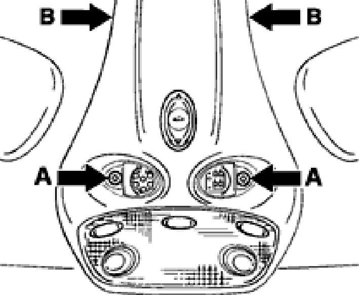 2. Unclip sensor holder at the rear left and right (arrow B), push forward towards the windshield and remove. Pull off electrical plug connection.