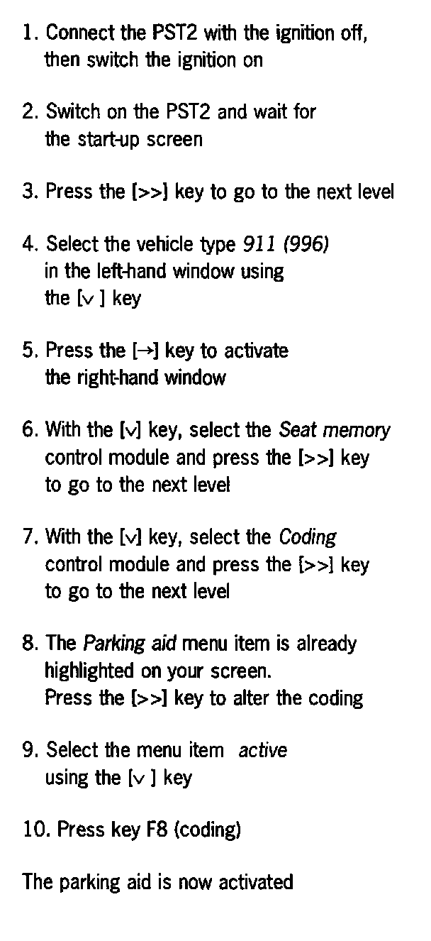 Procedure, Activating the parking aid