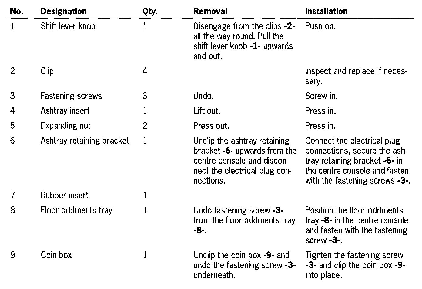 Removing and Installing Center Console
